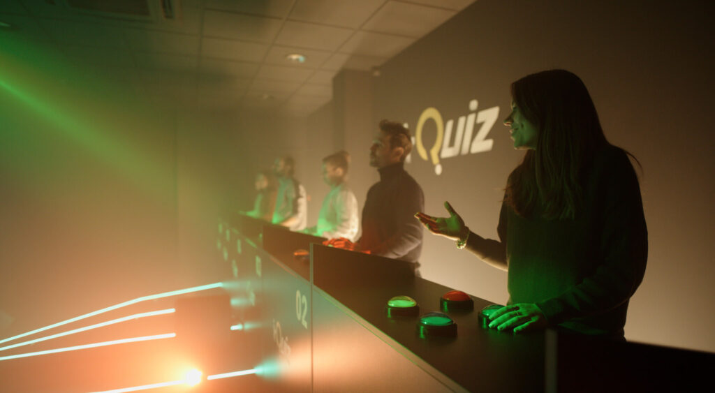 A l’instar des jeux TV tels que ‘’Qui veut gagner des millions ?’’, ‘’Le maillon faible’’, ‘’Questions pour un champion’’ ou encore ‘’Burger Quiz’’, nos salles de quiz ont été conçues pour vous faire vivre une expérience unique et immersive.